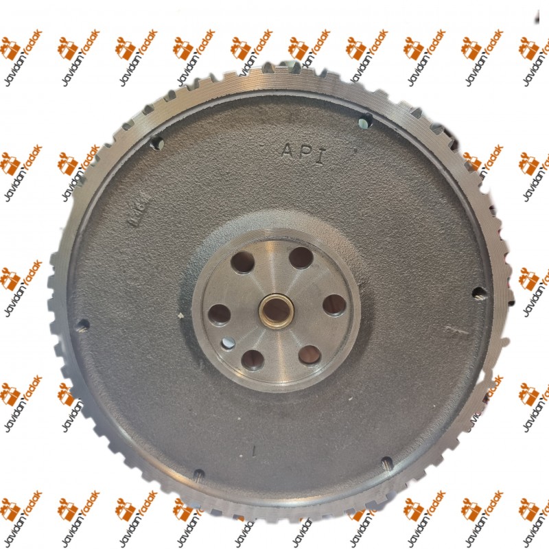 فلایویل : یک وسیله مکانیکی گرد است که به میل لنگ متصل می شود که از چرخش انرژی تولید می کند و سپس آن انرژی را برای استفاده بعدی ذخیره می کند. در مواقعی که گشتاور موتور متناوب است، فلایویل با انرژی دورانی ذخیره شده خود این را تکمیل می کند.